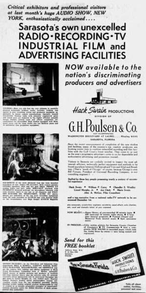 The song “Christmas in Florida,” written by John A. McGee and performed by Hack Swain with vocals by Lon Saxon and the Sun Maids can be found hidden on the internet if you know all the names and faces to search. The song was included on Florida Calling, an album release by the 1950s Sunshine Records label from Sarasota.